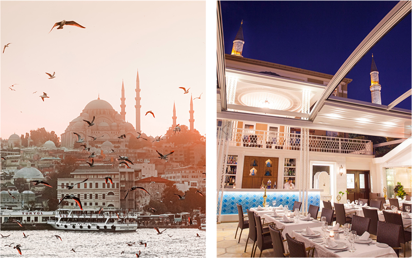 As soon as you step off the boat, you can experience local dining and shopping, and then dive into the winding backstreets of Karaköy lined with independent boutiques and coffee shops, where a young crowd sips flat whites in the shadow of the several old orthodox churches here. Don’t forget to stop at the historic Karaköy Güllüoğlu (they’ve also just re-opened in a shiny new shop this year) for the city’s best baklava and a glass of tea. Or, you could relax your muscles and have an authentic Turkish hamam experience at one of the city’s best bathhouses – the beautiful Kılıç Ali Paşa Hamam – tucked in right between Galataport and the streets of Karaköy.