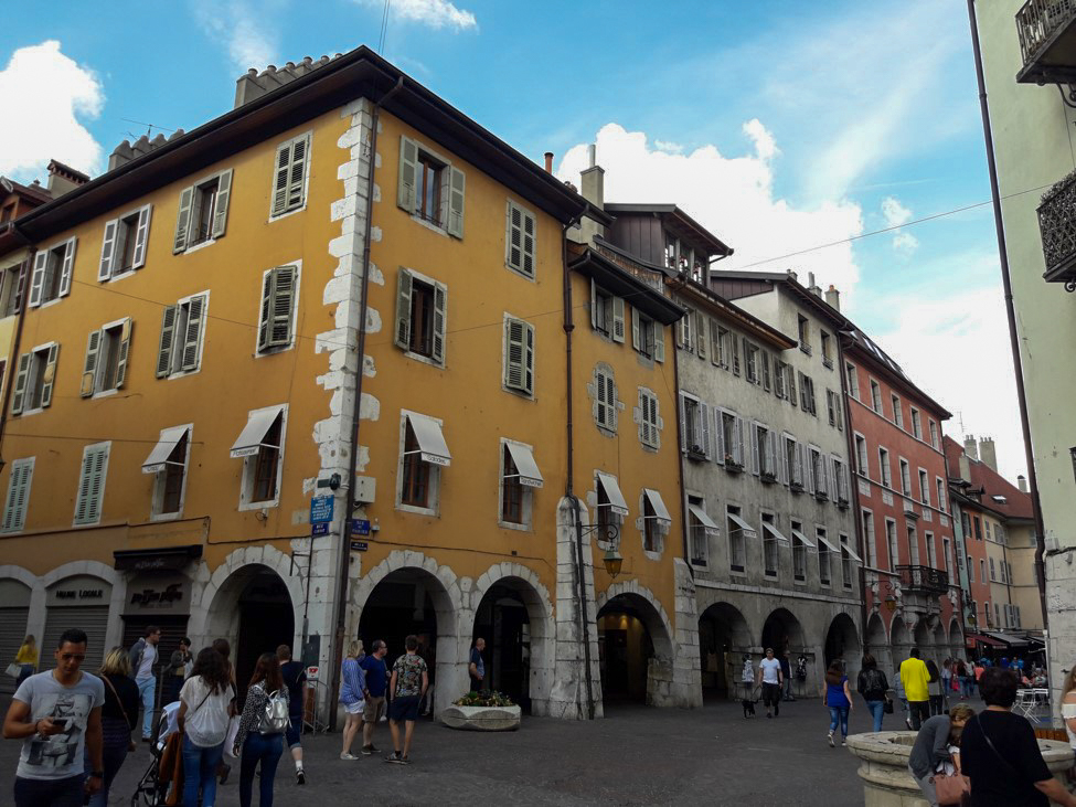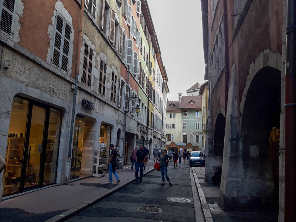Rue Sainte-Claire and Rue de L’Île form one of the main arteries of Annecy’s old town streets.