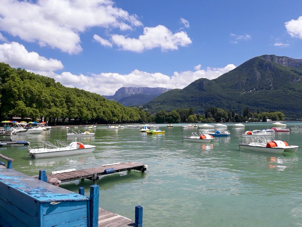 There are paddleboats resting all around the lake just waiting patiently for someone to come and steer them out over the peaceful, inviting waters of Lac d’Annecy.