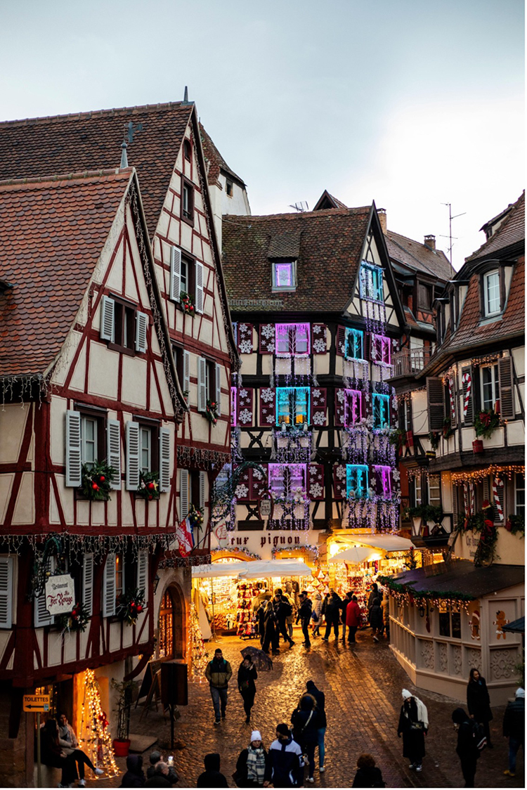 The Alsace region of France offers equally enchanting markets either by city (Strasbourg) or village (Colmar and its neighbors). Timber-framed houses are strung with twinkling lights, while stalls entice with tasty bredele (Alsatian cookies or cakes) and warm vin chaud.