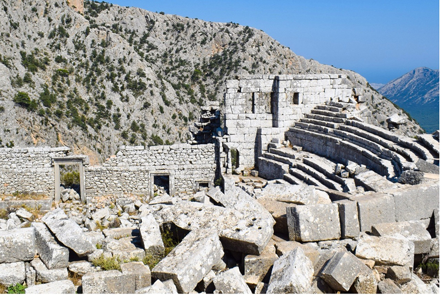 Lost cities of antiquity fill the map around Antalya, Türkiye’s favorite southern Mediterranean vacation destination. Within a 1-hour driving radius of the big city you can find the ancient ruins of Perge, Aspendos, Side, Termessos, Neapolis, Ariassos, Pednelissos, Mnara, Phaselis and more. Many are overtaken by nature but provide an evocative rest-stop for trekkers on their way through the Turkish landscape.