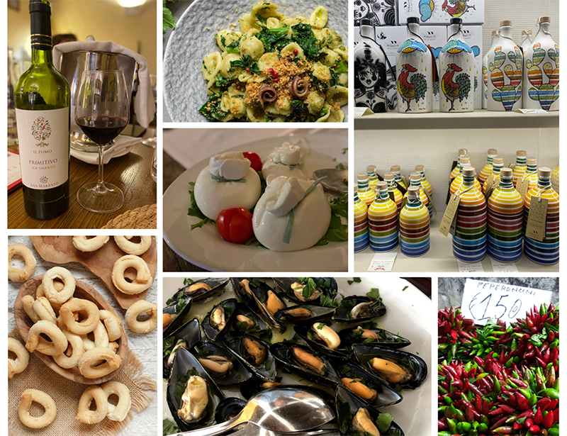 No visit to Puglia is complete without savoring its mouthwatering cuisine! Sample the region’s famous burrata cheese, a creamy delicacy made with mozzarella and cow’s milk cream. Pair it with locally-grown tomatoes and a drizzle of prized Puglian extra virgin olive oil. Although the region’s widespread olive groves have been ravaged by a foreign bacteria over the last decade, Puglia remains the top olive-oil producing region of Italy. From the fields to the table, local dishes have the rustic appeal of the ‘cucina povera’, which takes humble home-grown ingredients and lets them shine with centuries of expertise.
