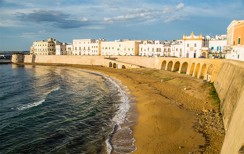 Gallipoli: Opposite Otranto, on the Salento Peninsula’s Ionian Coast, Gallipoli is another must-visit town. Not the same as the WWI Gallipoli you might be thinking of (that one is in Türkiye), although the strategic position of this town made sure its defensive fortifications were put to good use. Today the walls of the tiny historic quarter enclose an impressive collection of Baroque monuments. The seafront promenade affords wonderful views out to the lighthouse of Sant’Andrea Island. In the summertime, relax on the golden sands of Baia Verde or explore the rocky coves of Punta della Suina.