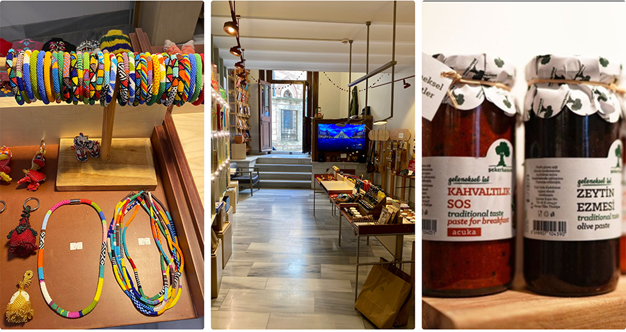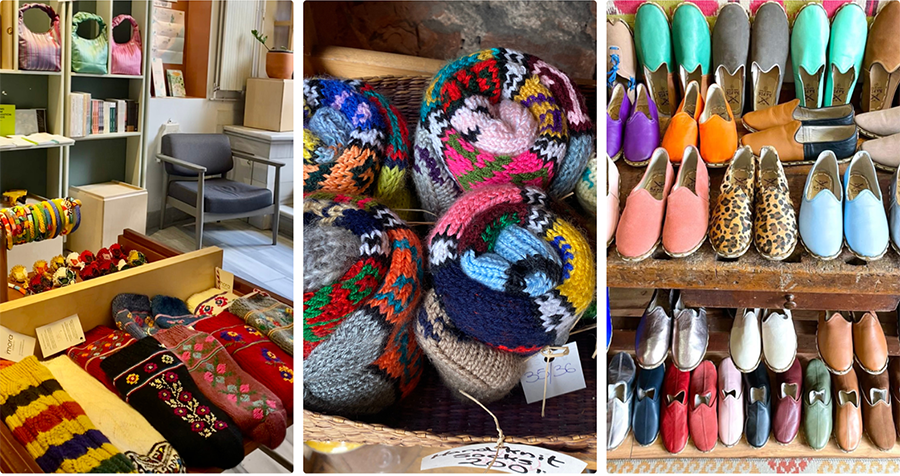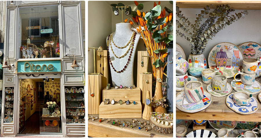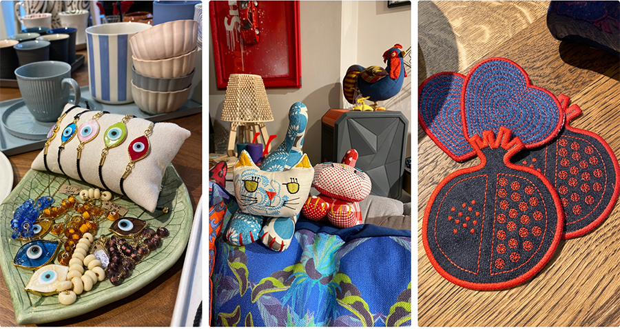 Unique gifts and treasures, handmade by local female designers, ranging from jewelry to ceramics, from textiles to leather goods, and home décor.