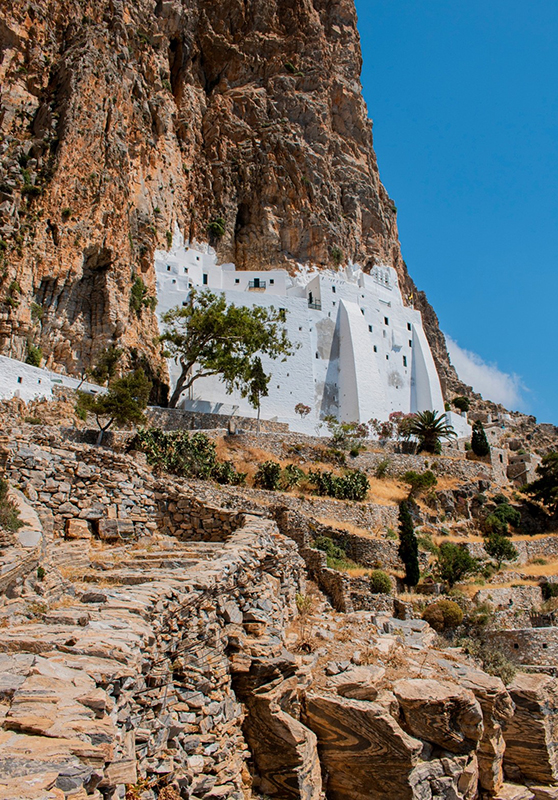 Remote and dramatic, Amorgos is home to craggy cliffs, hidden beaches, and the awe-inspiring Hozoviotissa Monastery. Trails connect picturesque villages, offering a deeply moving, unplugged experience. Amorgos is long and skinny, a Cycladic beauty with imposing peaks and welcoming traditions.