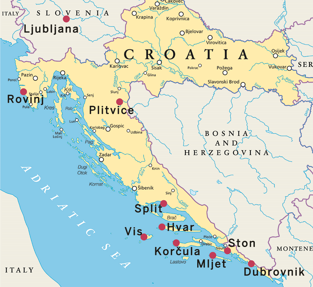 Ljubljana | Rovinj | Plitvice | Split | Hvar | Vis | Korcula | Mljet | Ston | Dubrovnik (16 Days)