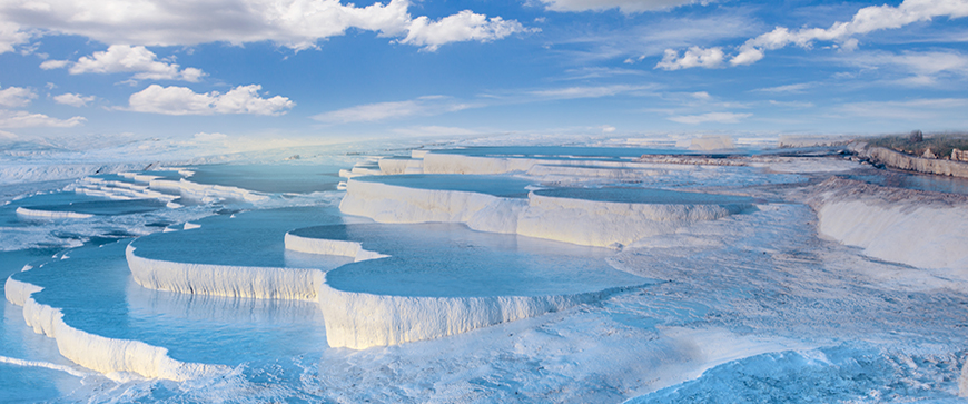 Flight to Denizli and private transfer to your hotel. Visit the thermal springs of Pamukkale and ancient Hierapolis. |